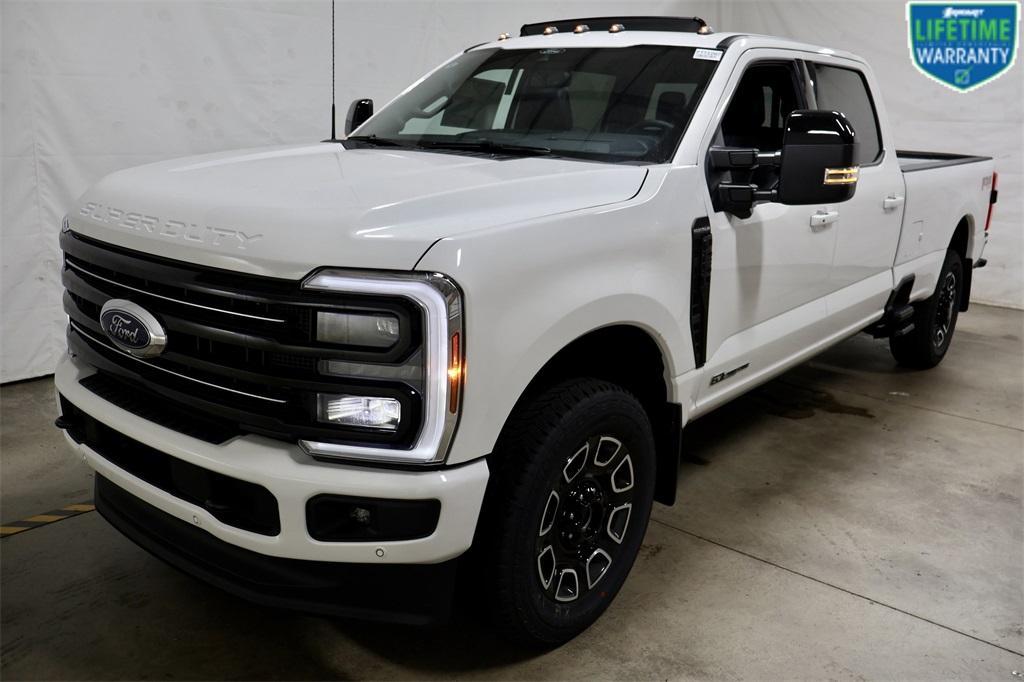 5th Wheel/Gooseneck Hitch Prep Package, F-250 >10K GVWR Package, Ford Connectivity Package (1-Year Included), FX4 Off-Road Package (Hill Descent Control, Off-Road Specifically Tuned Shock Absorbers, and Unique FX4 Off-Road Box Decal), Internet access capable: 5G Modem - Ford Connectivity Package, 4-Wheel Disc Brakes, 410 Amp Dual Alternators, ABS brakes, Adjustable pedals, Air Conditioning, Alloy wheels, AM/FM radio: SiriusXM with 360L, Auto High-beam Headlights, Auto-dimming Rear-View mirror, Automatic temperature control, Brake assist, Compass, Delay-off headlights, Driver door bin, Driver vanity mirror, Dual front impact airbags, Dual front side impact airbags, Electronic Stability Control, Emergency communication system: SYNC 4 911 Assist, Engine Block Heater, Flow-Through Console, Ford Connectivity Pack (One-Time Purchase - 7 Yrs), Front & Rear Wheel Well Liners, Front anti-roll bar, Front Bucket Seats, Front Center Armrest, Front dual zone A/C, Front fog lights, Front reading lights, Front Splash Guards/Mud Flaps, Fully automatic headlights, Garage door transmitter, Heated door mirrors, Heated front seats, Heated rear seats, Heated steering wheel, Illuminated entry, LED Roof Clearance Lights, Low tire pressure warning, Memory seat, Navigation system: Connected Navigation, Outside temperature display, Overhead airbag, Overhead console, Panic alarm, Passenger door bin, Passenger vanity mirror, Pedal memory, Power door mirrors, Power driver seat, Power passenger seat, Power steering, Power windows, Radio: B&O Unleashed Sound System by Bang & Olufsen, Rain sensing wipers, Rapid-Heat Supplemental Cab Heater, Rear reading lights, Rear seat center armrest, Rear Splash Guards/Mud Flaps, Rear step bumper, Rear window defroster, Remote keyless entry, Retractable Bed Side-Step, Security system, SiriusXM w/360L, Speed control, Split folding rear seat, Steering wheel mounted audio controls, SYNC 4 w/Enhanced Voice Recognition, Tachometer, Telescoping steering wheel, Tilt steering wheel, Traction control, Trip computer, Turn signal indicator mirrors, Twin Panel Power Moonroof, Upfitter Switches (6), Variably intermittent wipers, and Ventilated front seats. Factory MSRP: $99,705 Star White Metallic Tri-Coat 2026 Ford F-250SD 4D Crew Cab Platinum Power Stroke 6.7L V8 DI 32V OHV Turbodiesel 10-Speed Automatic 4WD 5th Wheel/Gooseneck Hitch Prep Package, F-250 >10K GVWR Package, Ford Connectivity Package (1-Year Included), FX4 Off-Road Package (Hill Descent Control, Off-Road Specifically Tuned Shock Absorbers, and Unique FX4 Off-Road Box Decal), Internet access capable: 5G Modem - Ford Connectivity Package, 4-Wheel Disc Brakes, 410 Amp Dual Alternators, ABS brakes, Adjustable pedals, Air Conditioning, Alloy wheels, AM/FM radio: SiriusXM with 360L, Auto High-beam Headlights, Auto-dimming Rear-View mirror, Automatic temperature control, Brake assist, Compass, Delay-off headlights, Driver door bin, Driver vanity mirror, Dual front impact airbags, Dual front si